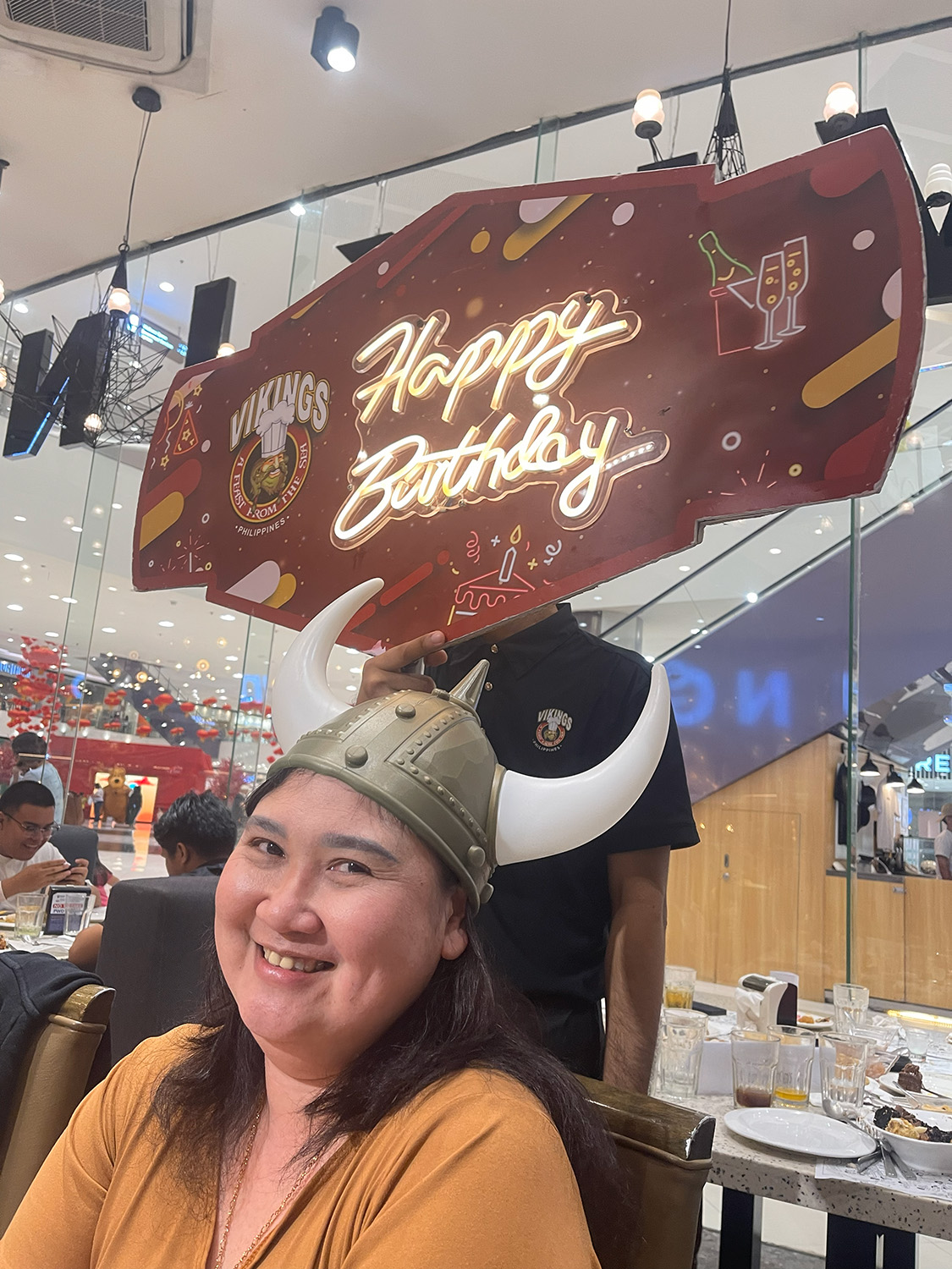 One thing I didn’t know—until it was already happening—was that Vikings also makes sure to acknowledge guests who have birthdays in the same month. I had just celebrated my birthday last January 6, and apparently Janice made sure my name was included. The next thing I knew, the Vikings staff were in front of me with a mini birthday cake, a Viking hat on my head, and a big Happy Birthday sign, insisting I blow out candles I did not mentally prepare for. It was unexpected, slightly embarrassing in the best way, and genuinely sweet.