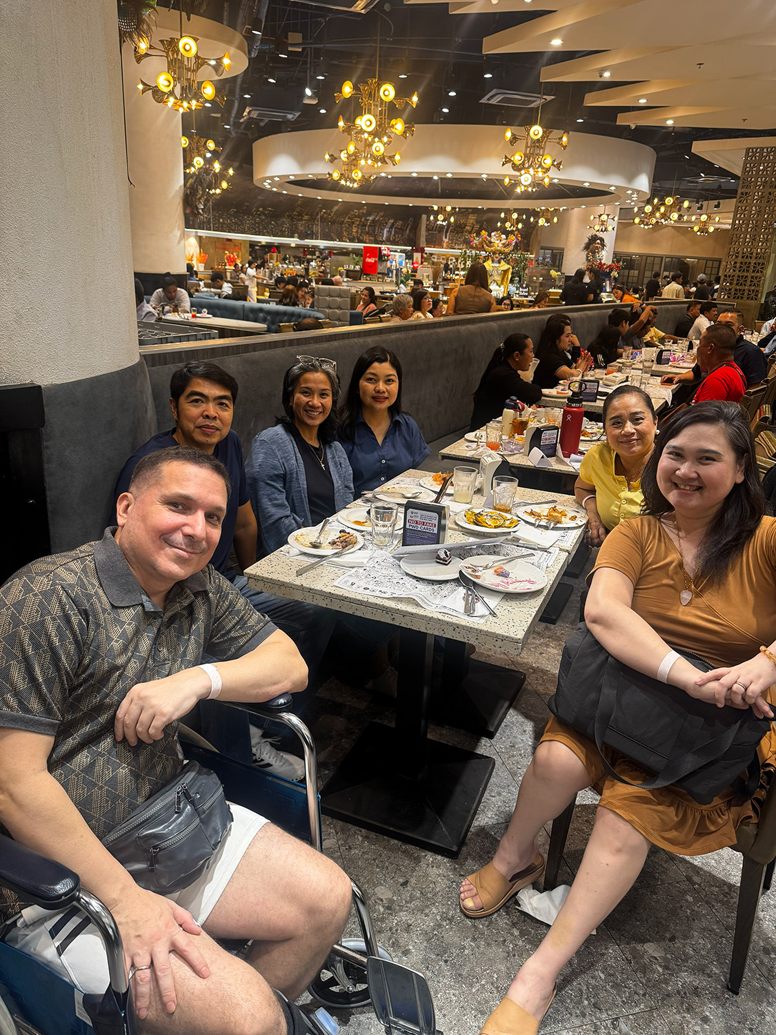 Parking at SM North Block was, as expected, full. Ken dropped us off while he heroically went off to park at South Block. Because Ralph is in a wheelchair, the guards gave us… let’s call it special treatment. Doors opened, paths cleared. Honestly, 10/10 experience. Would not recommend the injury, but the assistance? Impeccable.